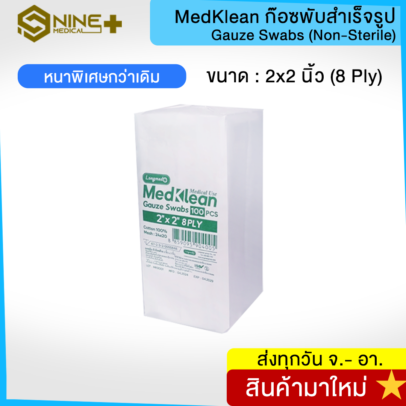 Medklean ก๊อซพับ ผ้าก๊อซปิดแผล ก๊อซ ฝ้ายแท้ (Gauze Swab) แบบหนา 2×2 นิ้ว/8 PLY 100 ชิ้น