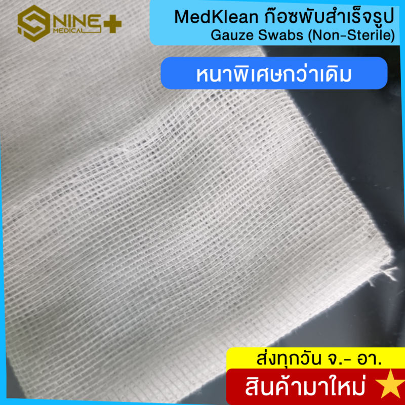 Medklean ก๊อซพับ ผ้าก๊อซปิดแผล ก๊อซ ฝ้ายแท้ (Gauze Swab) แบบหนา 4×4 นิ้ว/8 PLY 100 ชิ้น